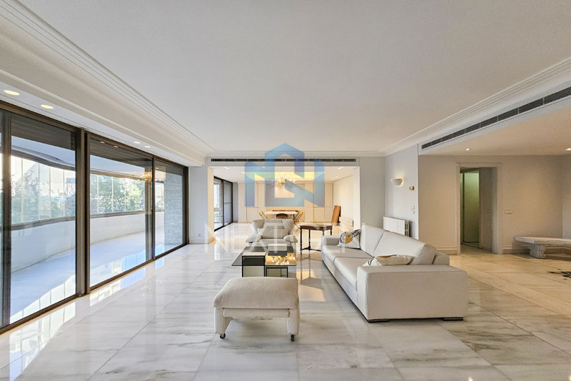 Located in a prime area of Achrafieh, this spacious 440 SQM apartment offers comfortable living with open spaces and a pleasant garden view.