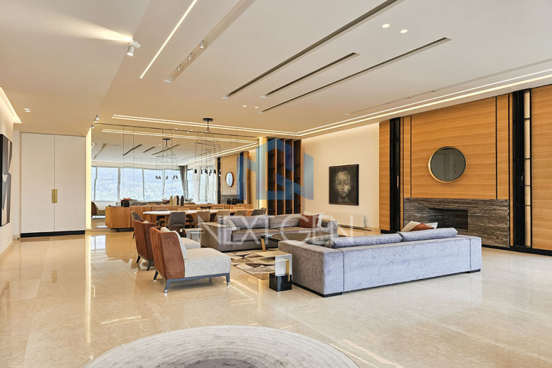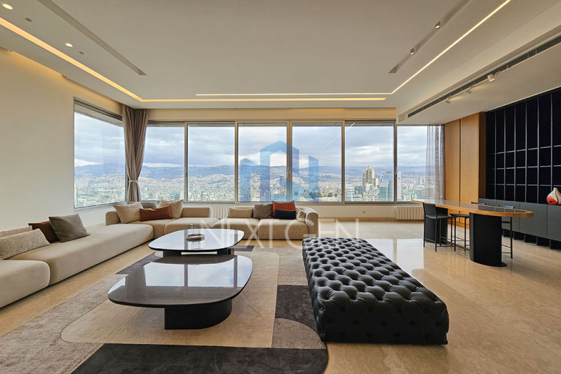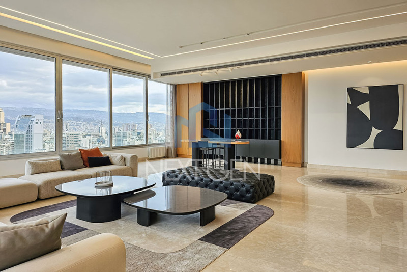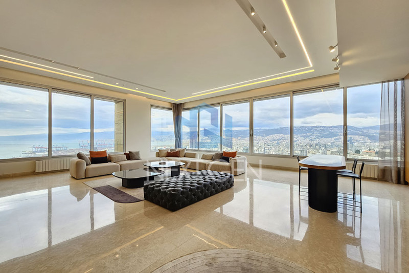 تقع هذه الشقة الراقية في موقع مميز جداً ضمن مبنى فاخر، وتمتد على مساحة ٥٤٥ متر مربع في طابق مرتفع، مع إطلالات خلّابة على البحر والجبل، وتشطيبات راقية مع نظام منزل ذكي.