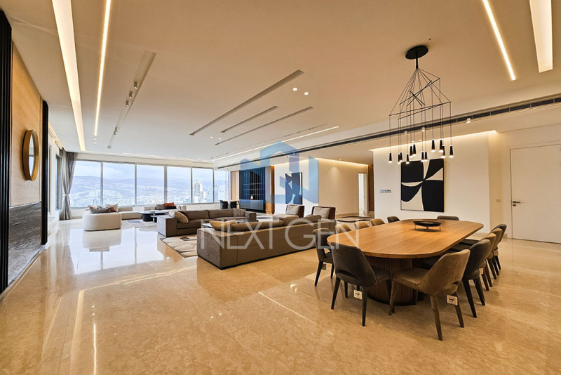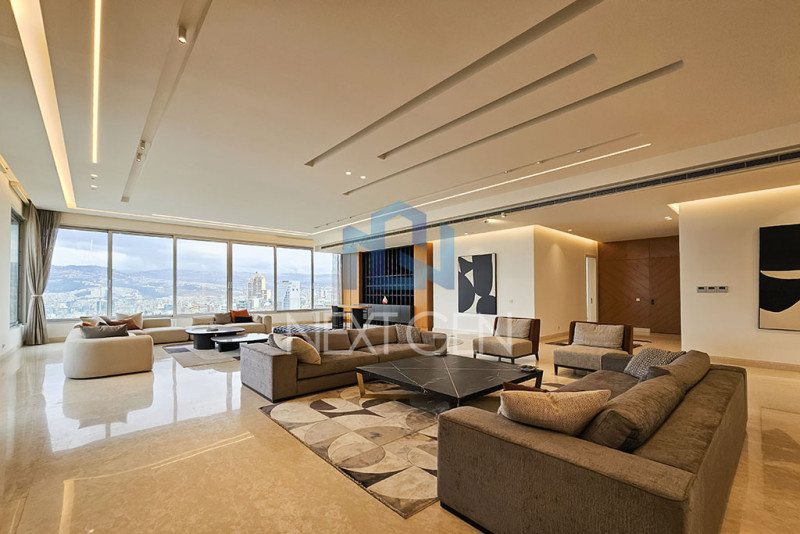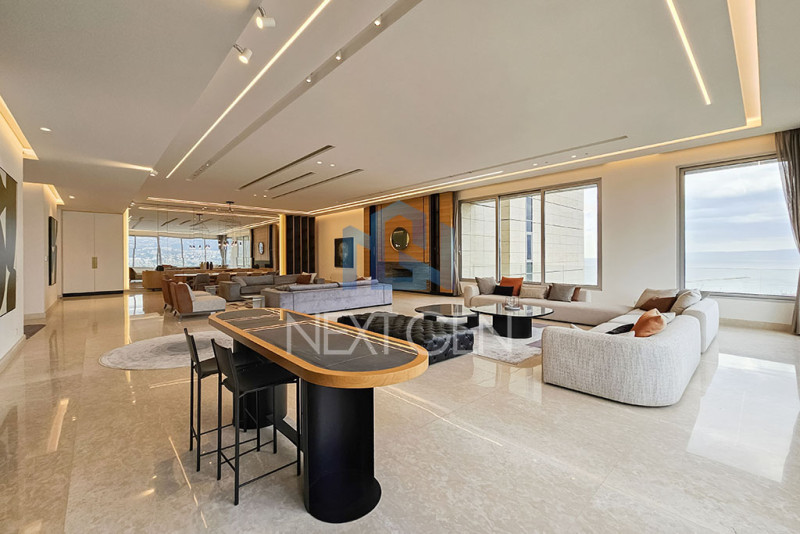 تقع هذه الشقة الراقية في موقع مميز جداً ضمن مبنى فاخر، وتمتد على مساحة ٥٤٥ متر مربع في طابق مرتفع، مع إطلالات خلّابة على البحر والجبل، وتشطيبات راقية مع نظام منزل ذكي.